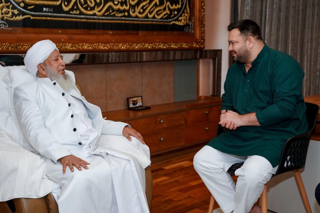 Tejashwi Yadav visited the Markaz in Kozhikode, where he held a cordial meeting with Sheikh Abubakr Ahmad. During the interaction, he praised the Grand Mufti’s remarkable contributions in the fields of education and humanitarian initiatives across India.